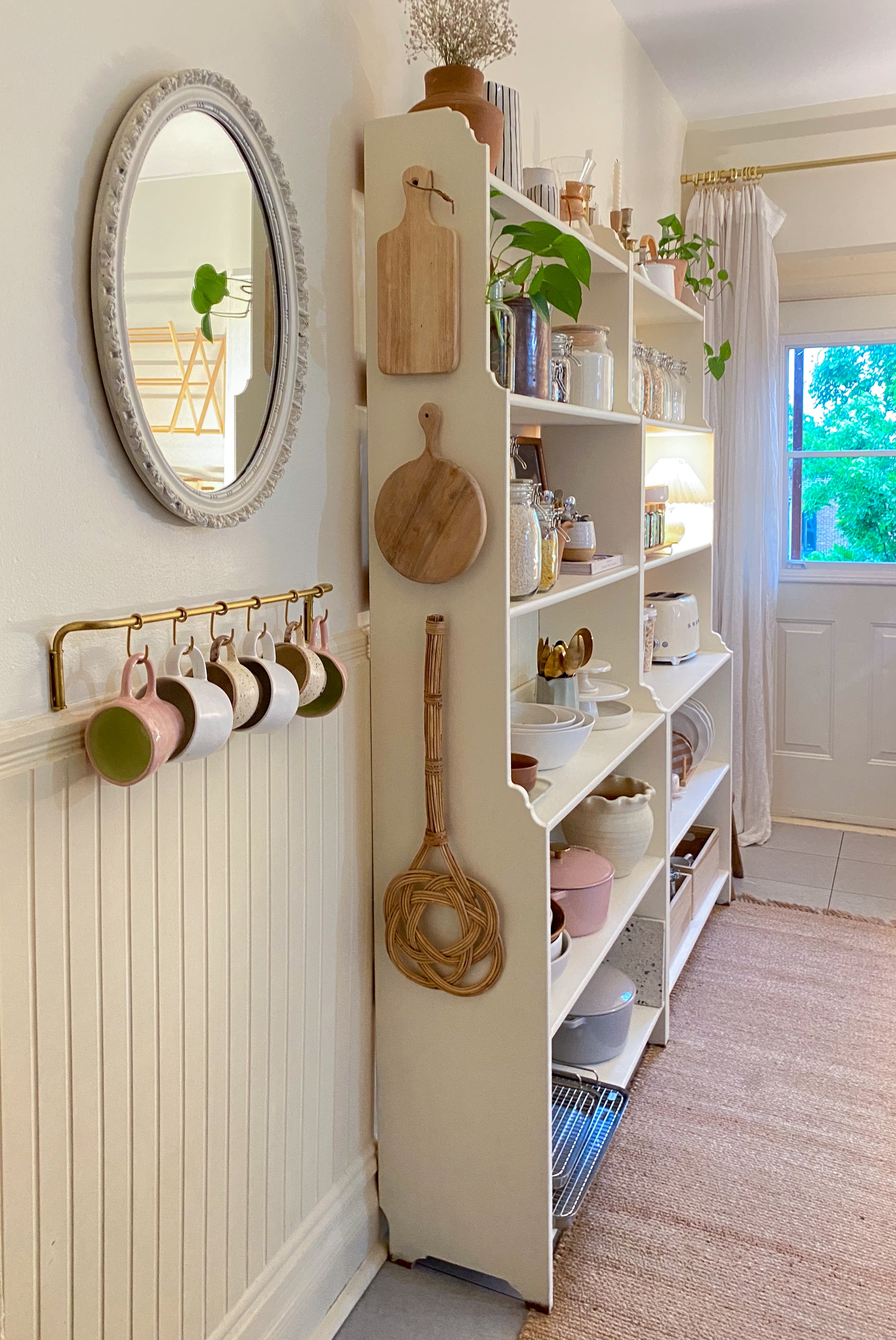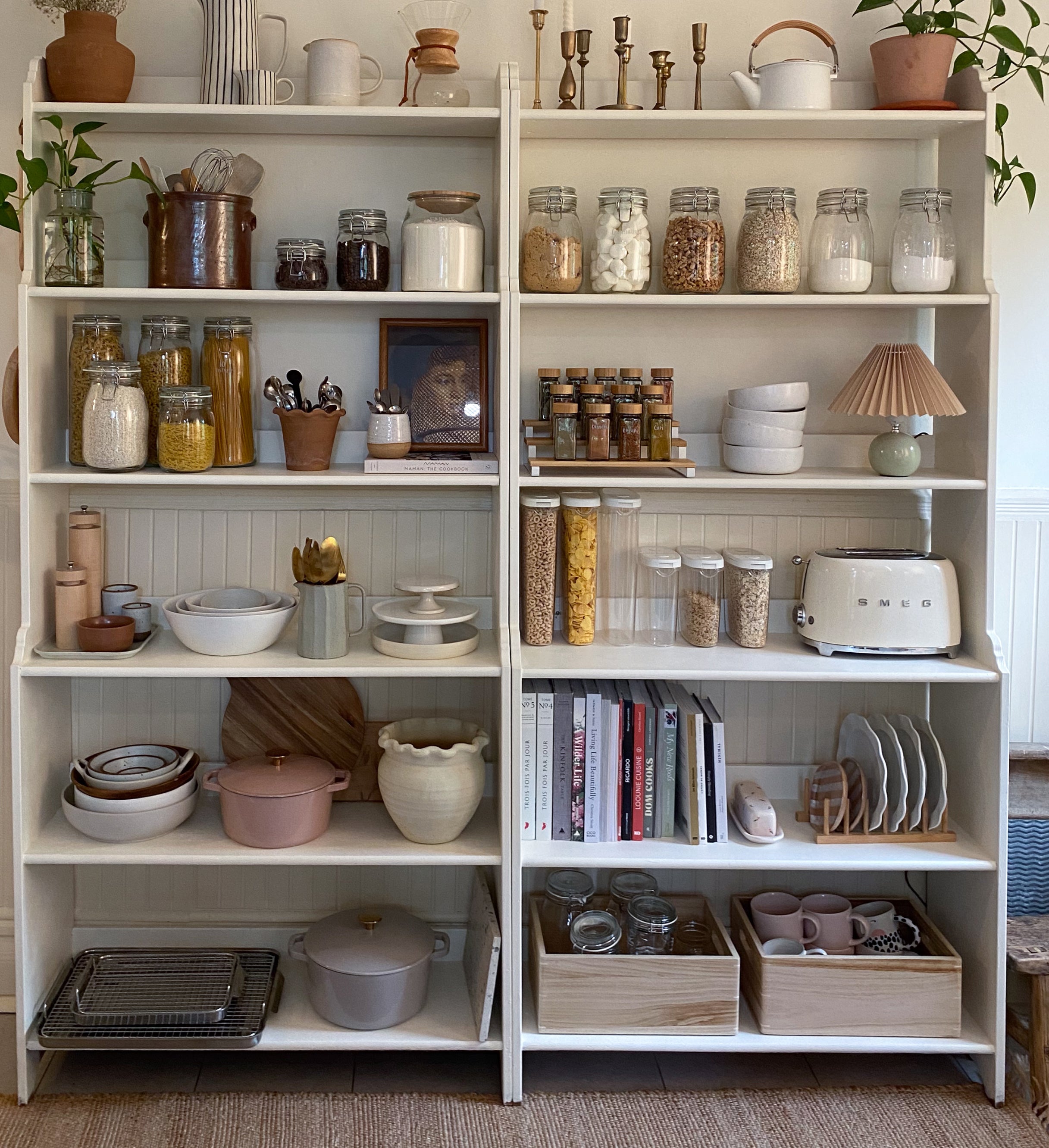 By maximizing every nook and cranny, we integrated custom storage solutions that combined functionality and design, while showcasing Emilie's beautiful objects and everyday essentials. This transformation not only gave her valuable time to focus on her creativity and content, but also a smoother management of meals and family activities.