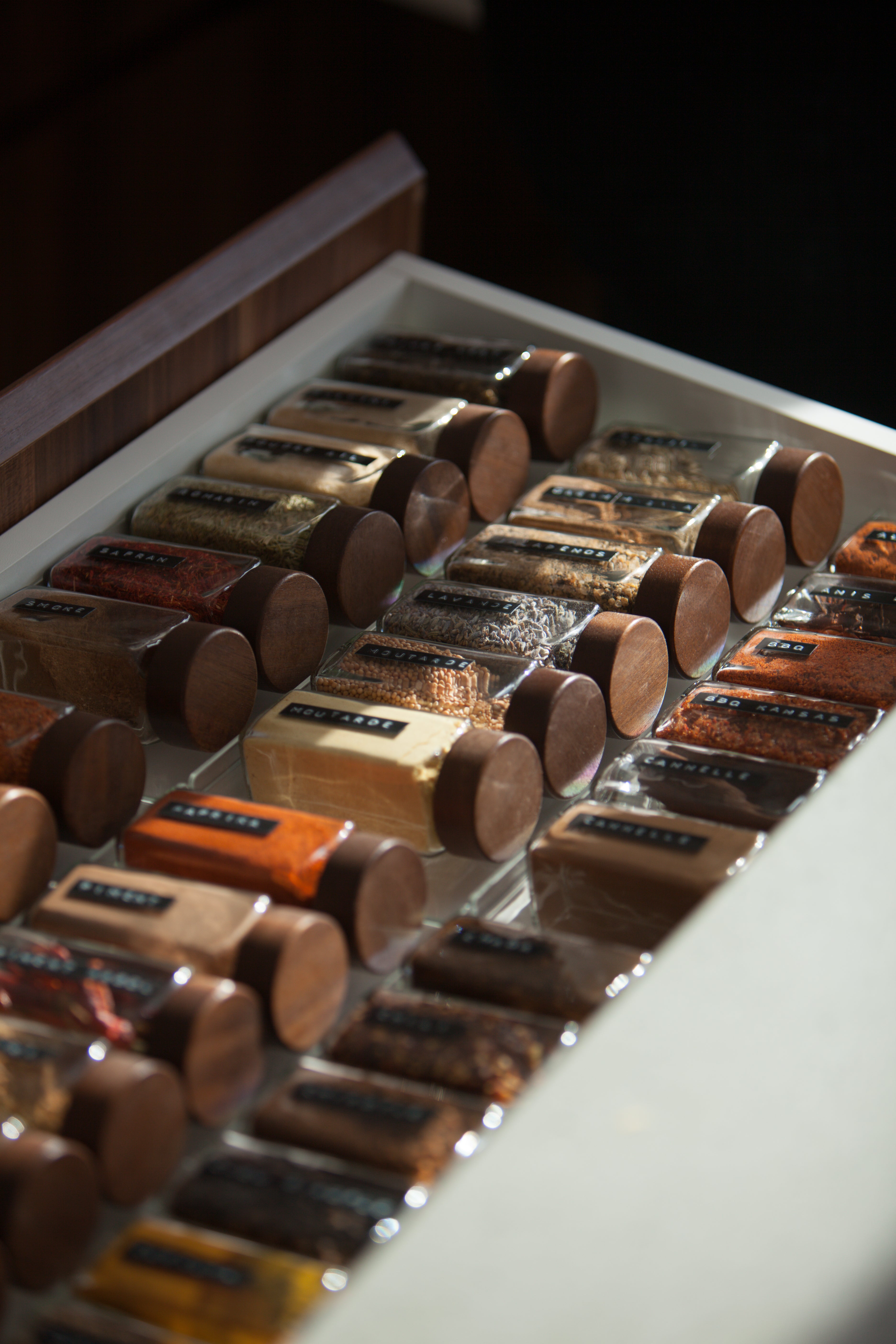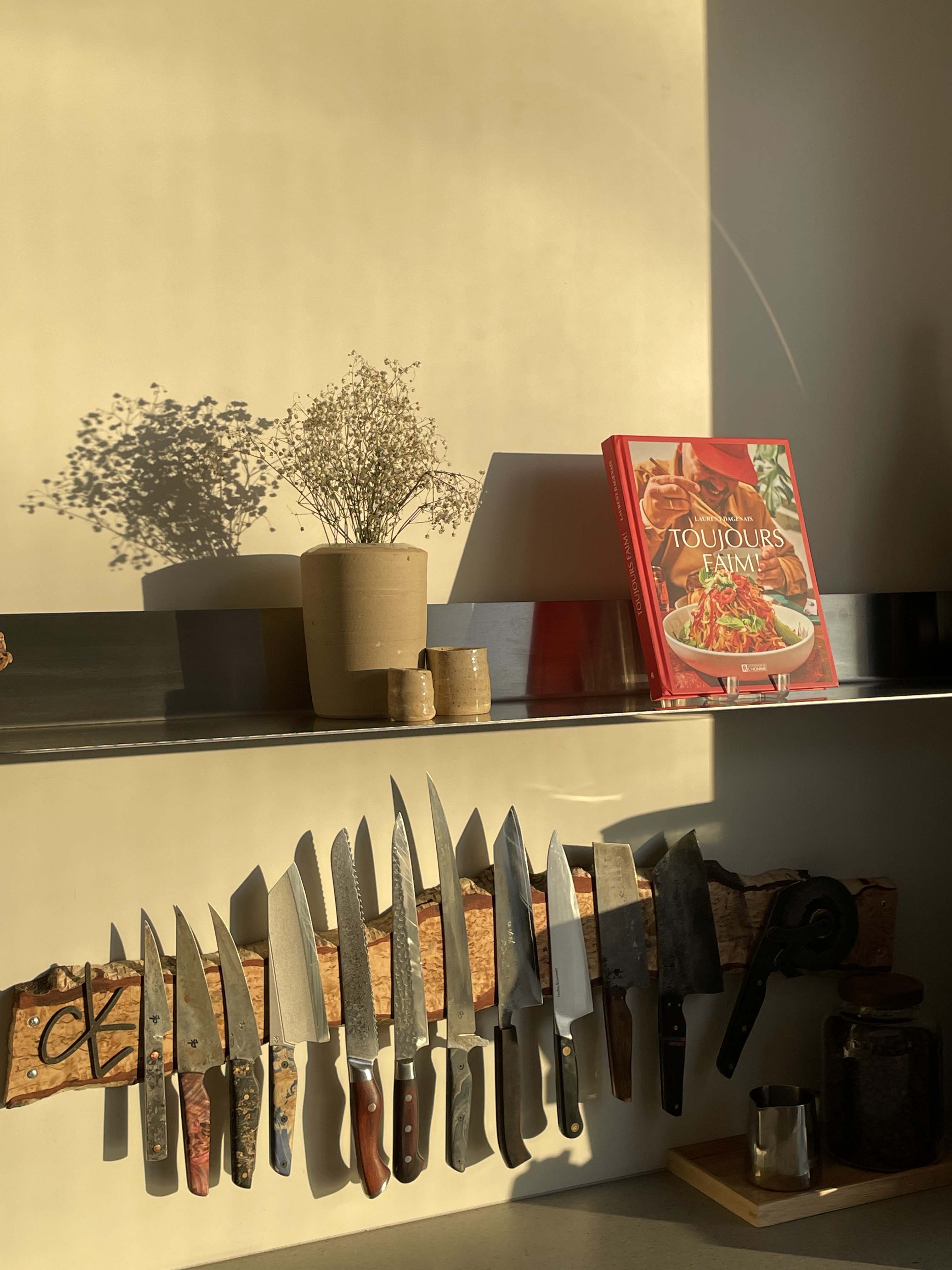 As a content creator and chef, Laurent Dagenais considers it essential to have a space dedicated to spices, his various kitchen tools and his pantry. This arrangement allows him to stay constantly inspired and cultivate his culinary creativity.